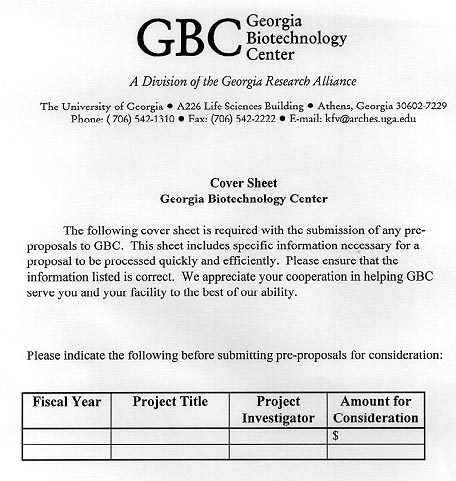 While implementing the solution, Undergrad. Services encountered a serious problem. The GBC was not receiving enough proposals to test our cover sheet. Although this was highly unlikely for this time of year, nothing could be done to rush researchers. They have until the end of the fiscal year to submit their proposals, which ends in July of 1998. To ensure our customer's satisfaction and to uphold our reputation, Undergrad. Services devised a second plan. Members of our team accessed proposals from 1995 and removed any indication that they had been processed. They appeared as if they were just submitted. Because these proposals had never been seen by Ashlei or Olesya, they were prime candidates for the implementation. Each proposal was submitted to the employees with a cover sheet correctly filled out. This information could be accessed from the proposals before they were stripped to their raw form.